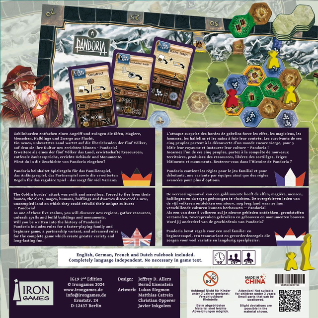 Pandoria (2nd Edition) includes the rules for a faster-playing beginner game, the family game, a partnership variant, and advanced rules for the complete game, with each realm having their own special abilities, which creates greater variety and long-lasting fun.