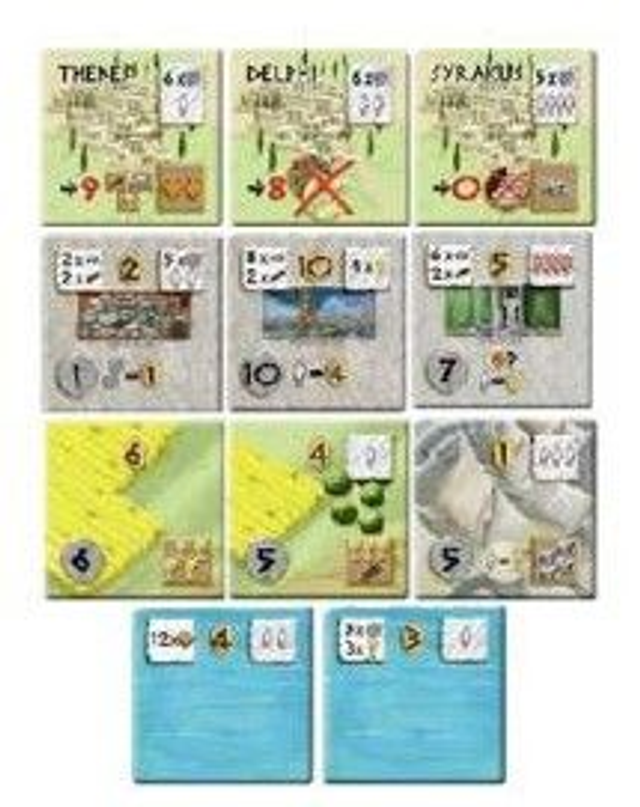 – 3 Promo Tiles: Civilization “Mycenae” and 2 additional tiles for the “Trade-Expansion”